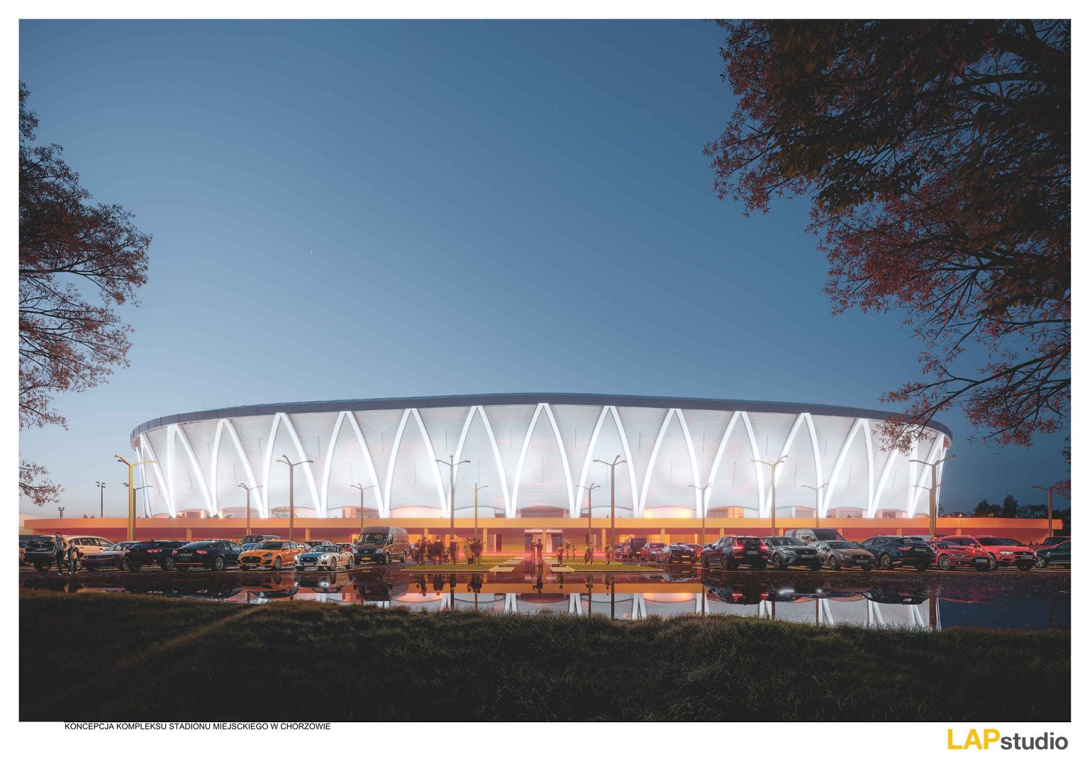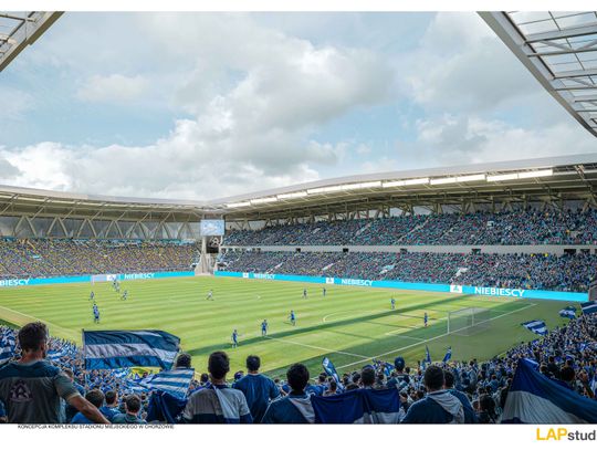 Przedmiotem zamówienia jest wieloetapowa realizacja kompleksu stadionowego w formule „zaprojektuj i wybuduj”. Całość inwestycji została podzielona na pięć etapów, co ma pozwolić na elastyczne zarządzanie procesem budowlanym oraz finansowaniem. Pierwszy etap gwarantowany w przetargu obejmuje budowę trybuny głównej o pojemności 6 000 miejsc siedzących z zapleczem techniczno-funkcjonalnym, budynkiem klubowym oraz infrastrukturą niezbędną do organizacji meczów Ekstraklasy. W ramach pierwszego etapu wykonane zostanie boisko główne oraz boisko treningowe z kompletną infrastrukturą techniczną. Zgodnie z harmonogramem, wykonanie części gwarantowanej wraz z uzyskaniem pozwolenia na użytkowanie powinno nastąpić w terminie do 24 miesięcy od daty podpisania umowy.