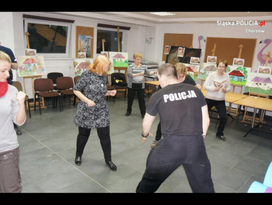Chorzowscy policjanci wspólnie z Centrum Integracji Międzypokoleniowej zorganizowali w ramach Chorzowskiej Koalicji na Rzecz Bezpieczeństwa kurs samoobrony dla kobiet. Asp. Tomasz Grzelec wspólnie z sierż Łukaszem Granicznym, w sali Centrum Integracji Międzypokoleniowej w Chorzowie przy ul Floriańskiej 24a, przeprowadzili zajęcia praktyczne w trakcie których panie poznały między innymi przydatne chwyty obezwładniające, kopnięcia, sposoby obrony przed duszeniem oraz inne porady związane z odpieraniem ataków.