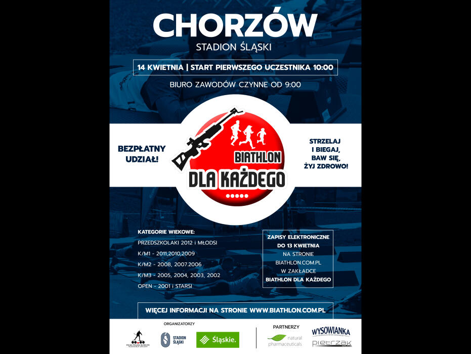 Tegoroczna edycja imprezy, która rozpocznie się na Stadionie Śląskim w Chorzowie, liczy aż 18 lokalizacji w kilku województwach i potrwa od kwietnia do października. - Celem zawodów „Biathlon Dla Każdego” jest przede wszystkim popularyzacja i upowszechnianie biathlonu jako dyscypliny sportu dostępnej dla wszystkich, promowanie aktywnego spędzania czasu oraz edukowanie najmłodszych poprzez sport – informuje Ewelina Kuzior ze Stadionu Śląskiego.