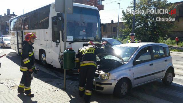 Mężczyzna kierujący fiatem panda z urazem nogi trafił do szpitala. Wg ustaleń chorzowskich policjantów, 67-latek jadąc ul. Armii Krajowej skręcił w ul. Wyspiańskiego, nie ustępując pierwszeństwa przejazdu prawidłowo jadącemu kierowcy autobusu turystycznego. W konsekwencji doszło do groźnego wypadku.