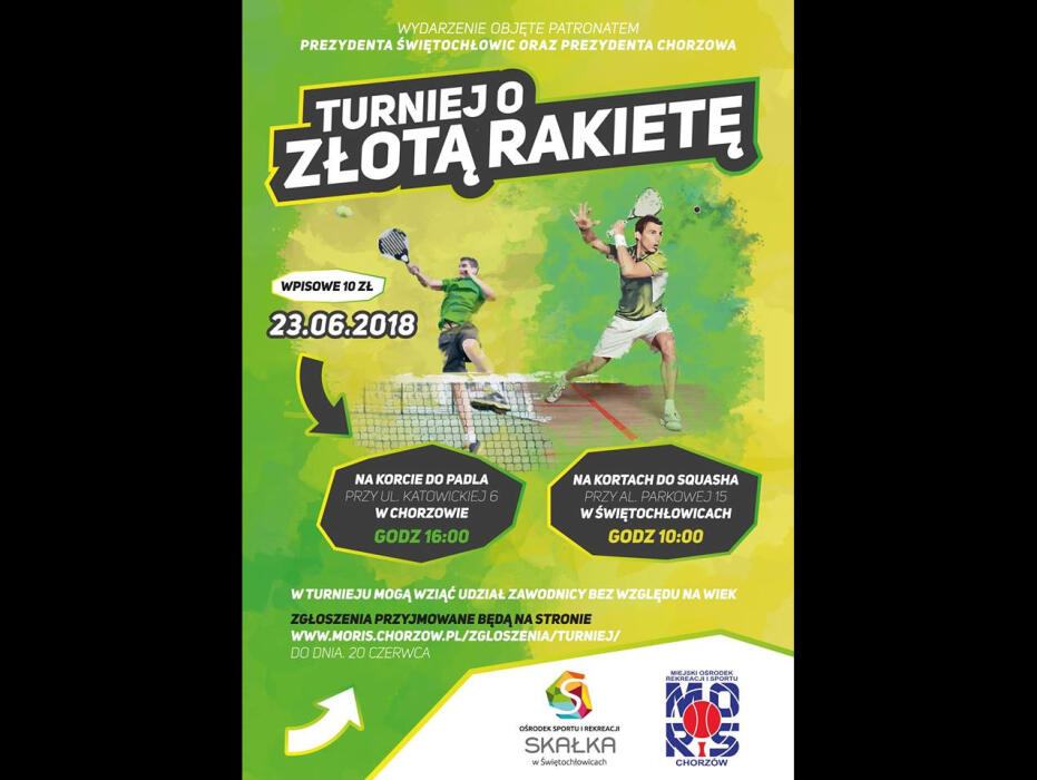 W środę, 23 czerwca, odbędzie się druga edycja Turnieju o „Złotą Rakietę”. Rywalizacja toczyć się będzie w dwóch dyscyplinach rakietowych – squashu oraz padlu. Turniej jest przeznaczony dla par deblowych (limit to 12 par), a wyłonienie najlepszych duetów odbędzie się na podstawie sumy punktów zdobytych w obu dyscyplinach.