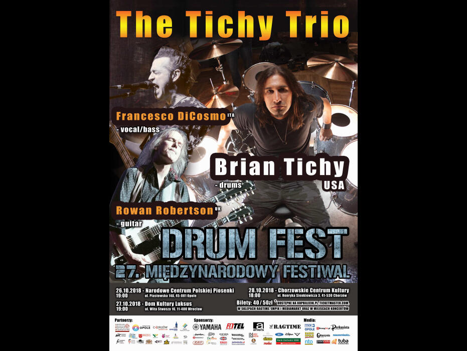 Na zakończenie całego festiwalu, które będzie miało miejsce w ChCK, odbędzie się natomiast koncert The Tichy Trio. Największą gwiazdą zespołu jest nie kto inny jak Brian Tichy – kolejny rewelacyjny perkusista w gronie festiwalowych gwiazd. Jego nazwisko brzmi nieco jak „cichy” i nie jest to przypadkowe, ponieważ ma czeskie korzenie. Tichý – tak nazywali się jego przodkowie. Współpracował m.in. z Billym Idolem, Ozzym Osbournem, a przez trzy lata był członkiem zespołu Whitesnake. The Tichy Trio zagrają 28 października, a słuchaczy, którzy zasiądą tego wieczoru na widowni, czeka solidna dawka amerykańskiego hard-rocka.