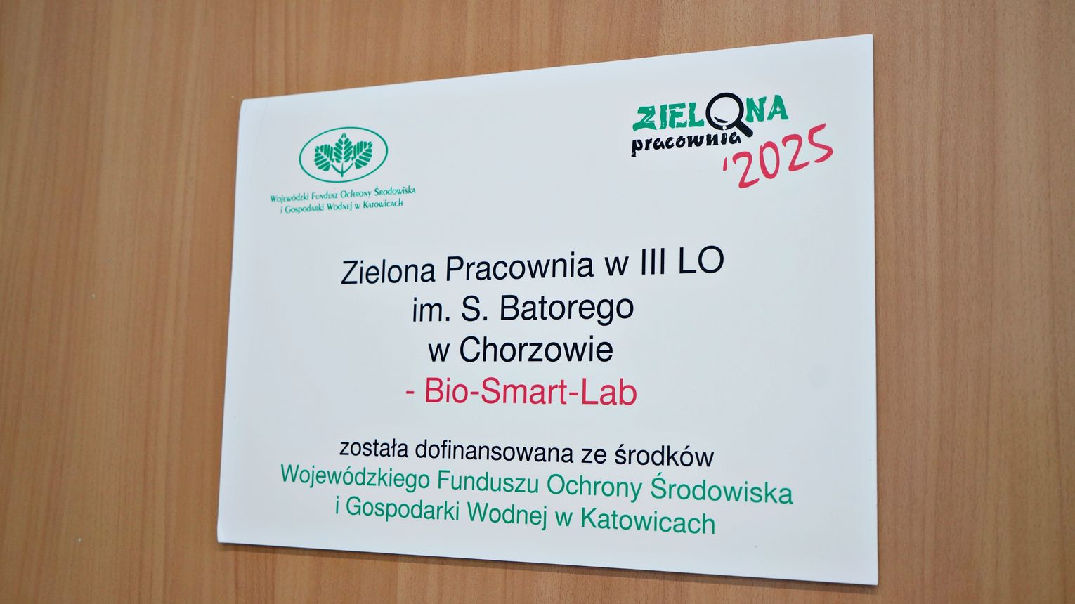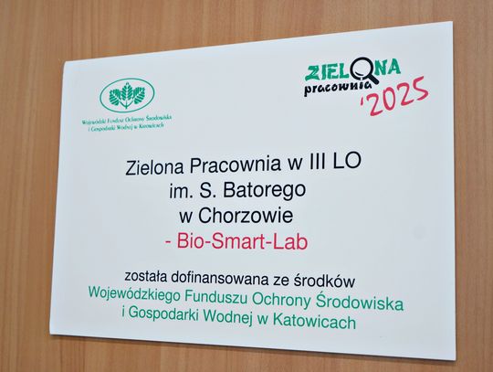 W ubiegłym tygodniu w 3 LO Batory Chorzów odbyło się oficjalne otwarcie Zielonej Pracowni - "Bio-Smart-Lab", dofinansowanej ze środków Wojewódzkiego Funduszu Ochrony Środowiska i Gospodarki Wodnej w Katowicach
