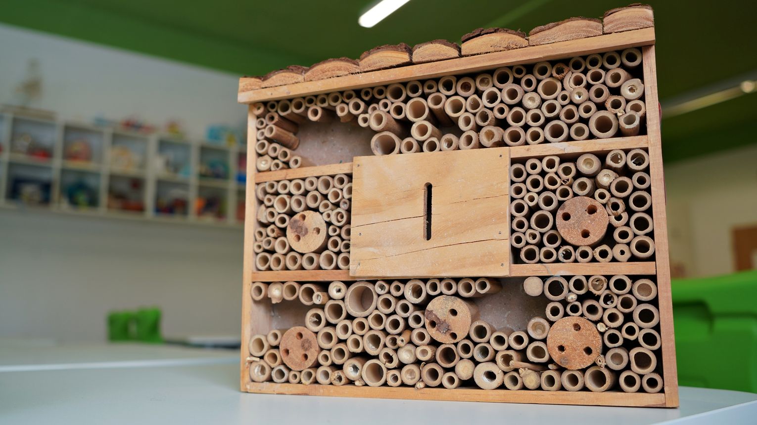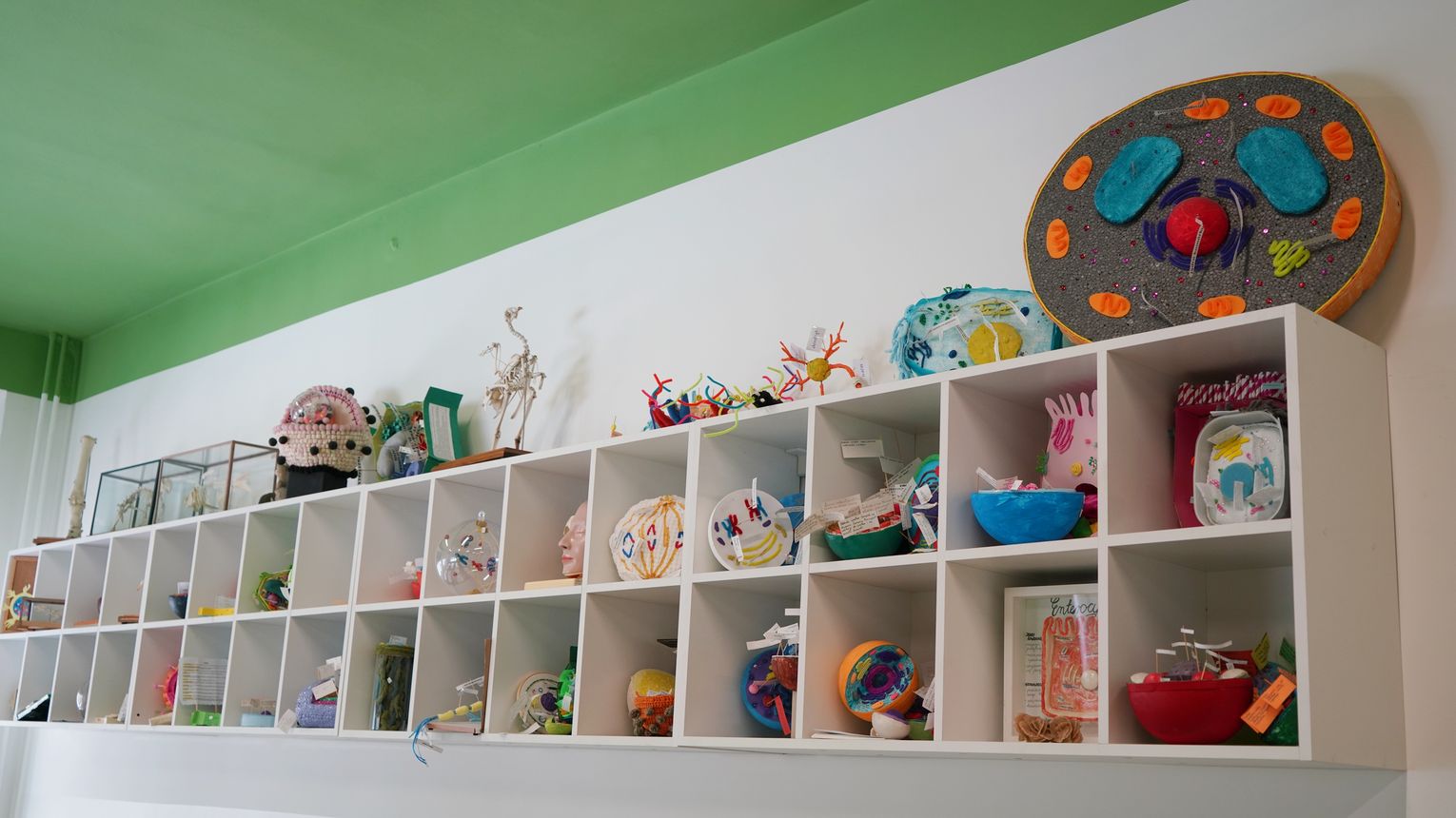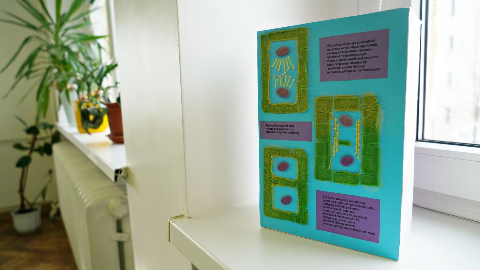 W sali dominuje teraz zielony kolor, w środku znalazły się półki na różnego rodzaju pomoce dydaktyczne, ponadto zakupiono regulowane stoliki, mające ułatwić prace przy mikroskopach, oraz stolik laboratoryjny, na którym będzie można wykonywać doświadczenia ![]()